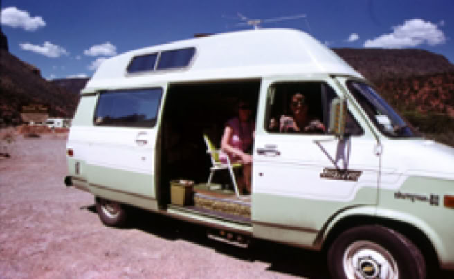 • (left) Much younger RV Navigators hiking the Grand Canyon in 1976