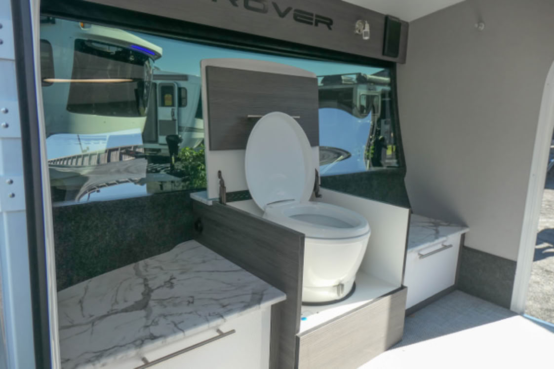 Which engineer thought of this? - The commode out in the open with windows and doors for easy viewing!