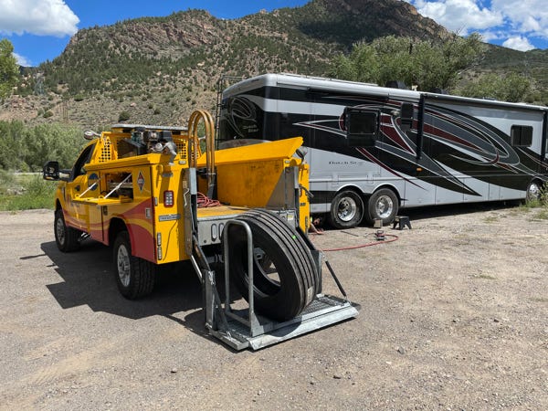 After cruising last month, we are back on the RV trail. We embark on our trip west to meet the planned RV Caravan leaving from St. George UT. We left a few days early because the trip is almost 1700 miles from our home base in IL. Lucky we did because we had a couple of extra stops along the way to get tires fixed.