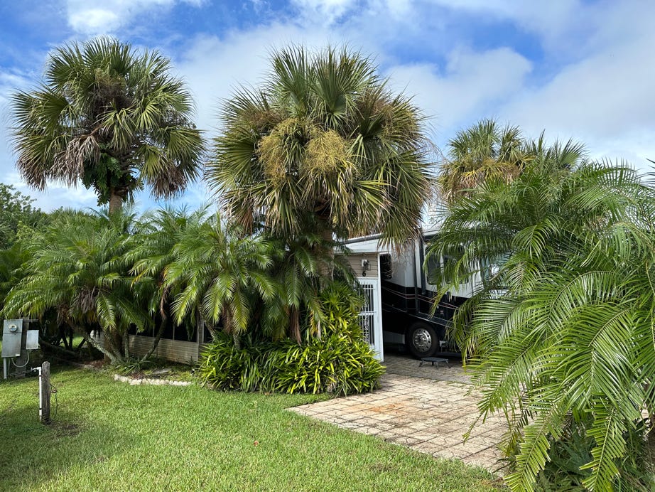 Our month was spent getting our Florida winter home back in shape for habitation.  After almost a year of absence, the plants had overgrown our lot.  We actually had to hire professionals to help us get it under control.  In addition to the clean up we had the roof recovered.  The MH performed well on our trip South giving us a home while visiting relatives in the Carolinas.  Once in FL we realized that the dash air con was dead so we spend $2700 to get it repaired.  Not too exciting but necessary.  Wd did enjoy the good weather of the Southlands as the temps headed down at home.  Flying home was a shock to the system as the weather was quite cold for the season.