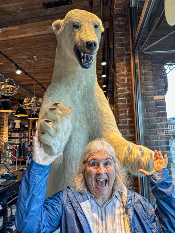 Greetings from the open seas of the North Atlantic as we cruise from Bergen, Norway to NYC over 28 days. Wildlife is always unpredictable, but during the recording of the podcast we spotted a whale outside of our cabin window.  It was a WOW moment and indicative of our travels this month.  A mix of wildlife (mainly birds and water mammals) and water scenery including glaciers, waterfalls and fjords.  All three countries that we visited had an abundance of fjords with picturesque little towns at the end.  Of the three countries, Norway provided the best photo opportunities.  And it was the warmest.  Otherwise the trip to the north was a cold and rainy experience however interesting it was.